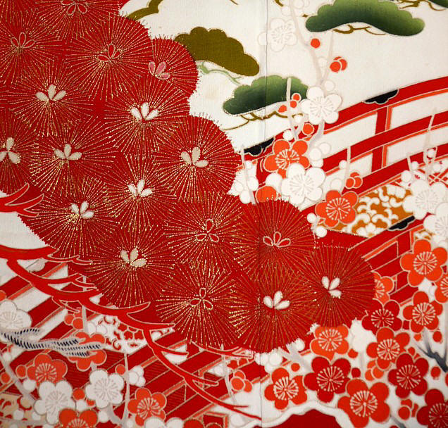 стороне кимоно. Частично рисунок вышит золотыми